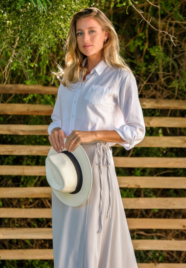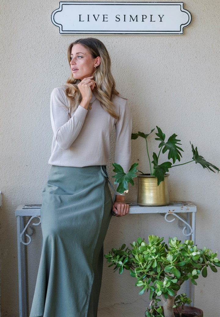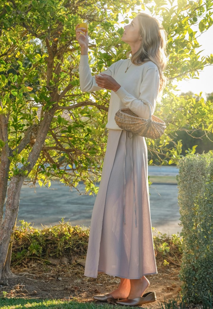 These timeless wrap skirts are made from a beautiful linen blend, which allows them to fall graciously.