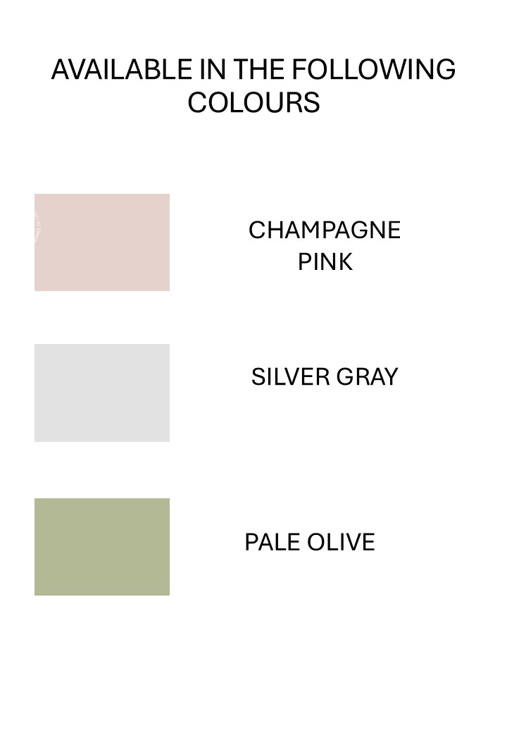 | COLOUR | CHAMPAGNE PINK, SILVER GREY, PALE OLIVE |