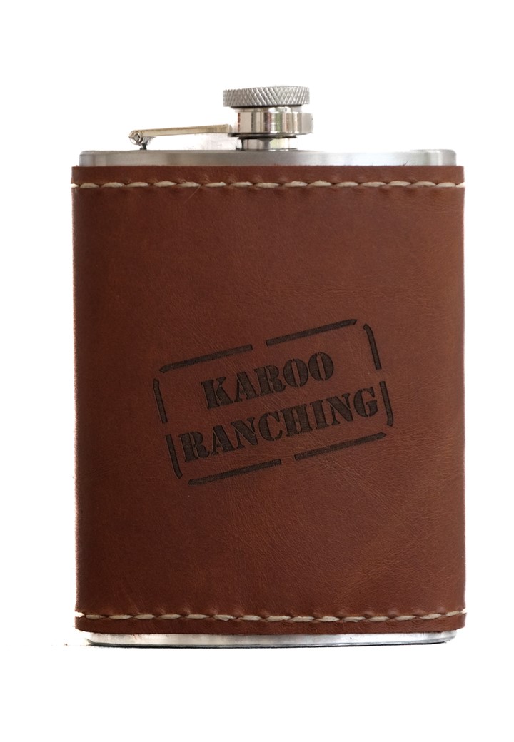 The KAROO RANCHING Leather Bound Hipflask is the ultimate accessory for any journey.